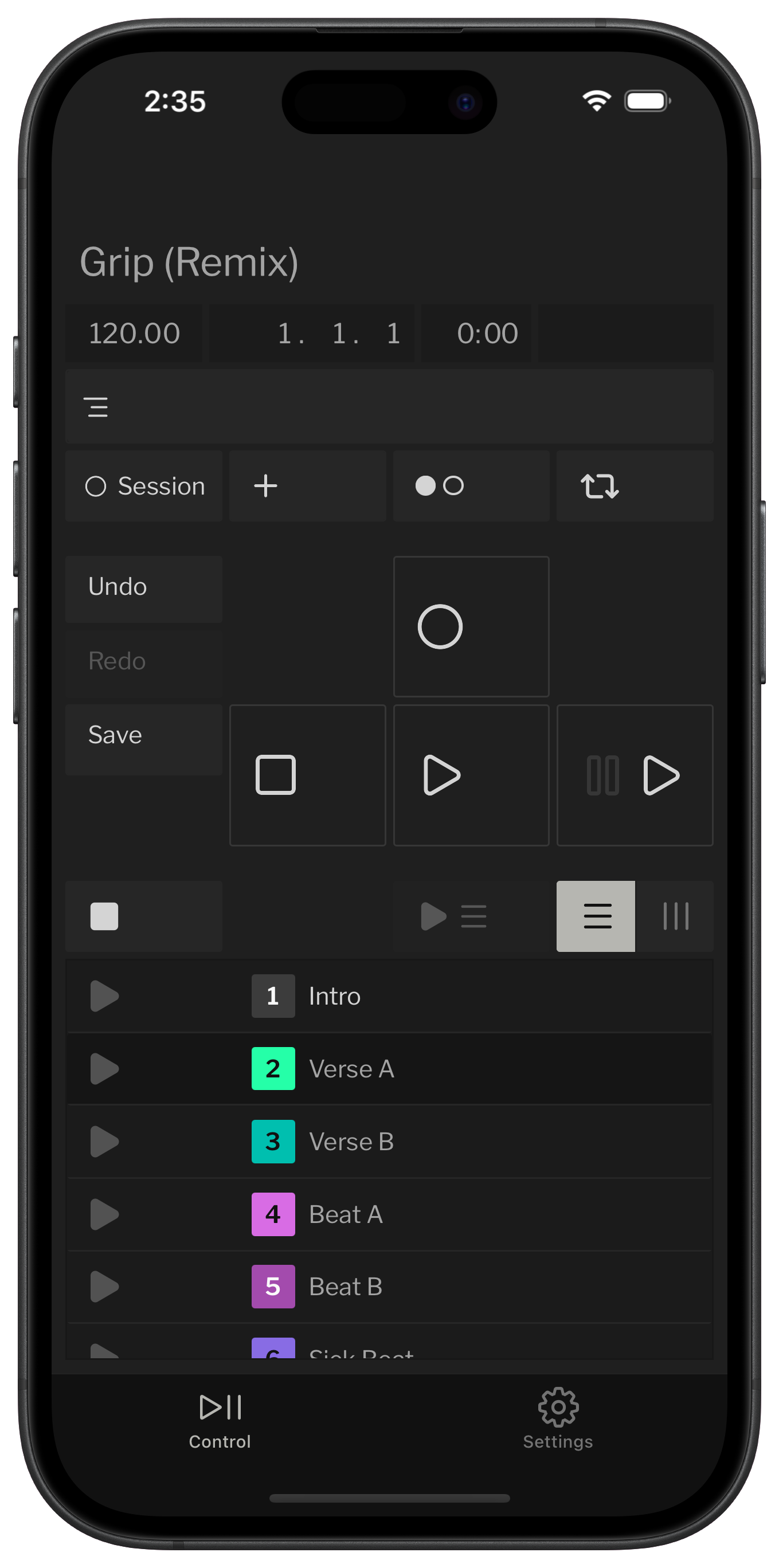 In the Link, Tempo & MIDI tab, select Grip as a Control Surface.